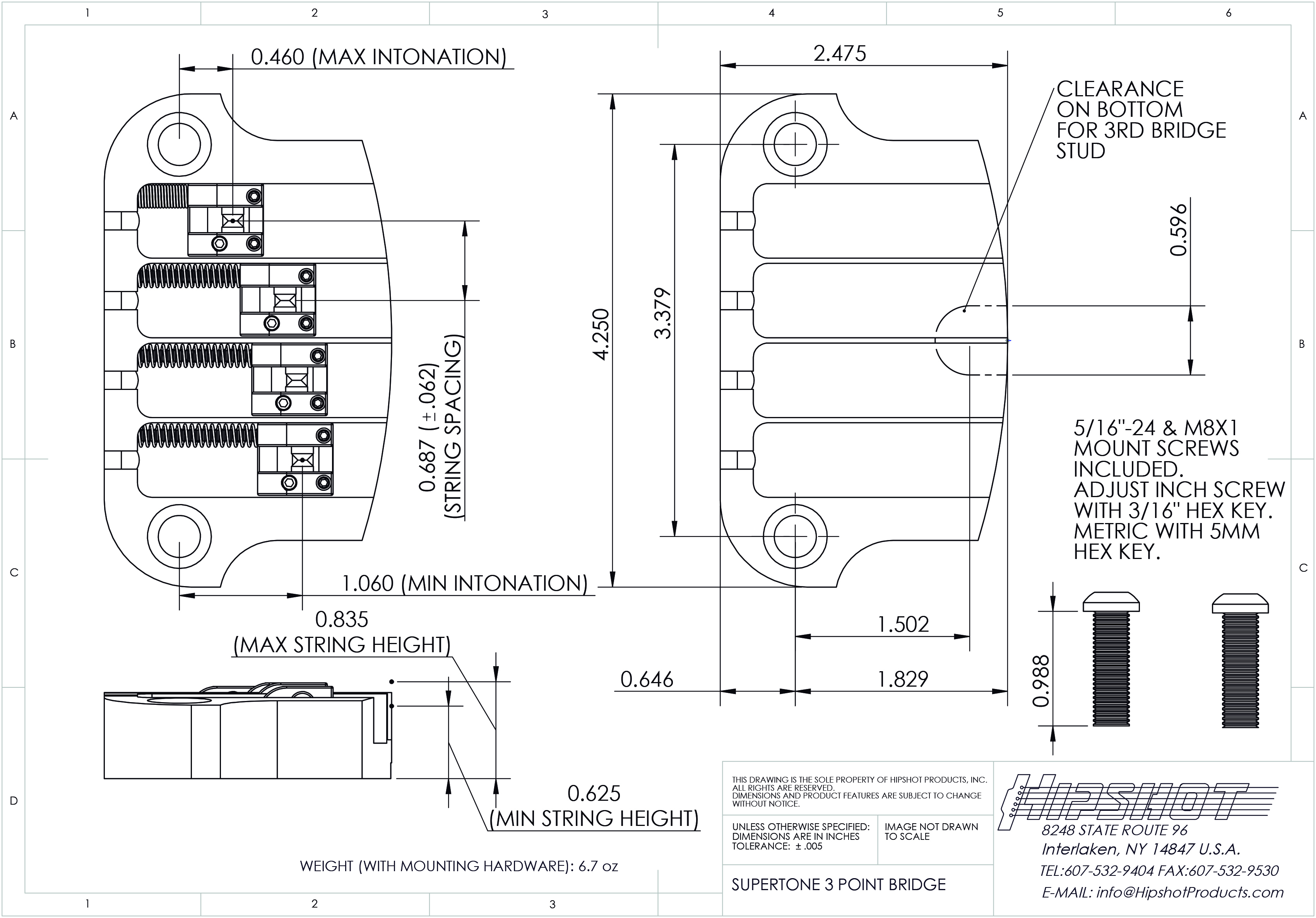 • Los saddles estilo Hipshot A ofrecen una gama completa de entonación utilizable, espaciamiento de lado a lado y ajuste de altura