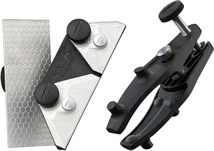 Tijeras y Hachas: Con la Guia de Tijeras SC-40 y la AX-40 Axe Jig para hachas de diferentes formas.