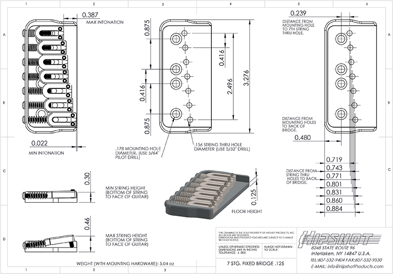 • Altura .125", diseñado para una acción perfecta en guitarras con cuellos no angulados y de bajo perfil.